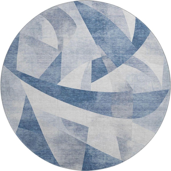 Mayfield Premium Machine Washable Abstract AMF1836 Denim 8 ft. x 8 ft. Round Rug
