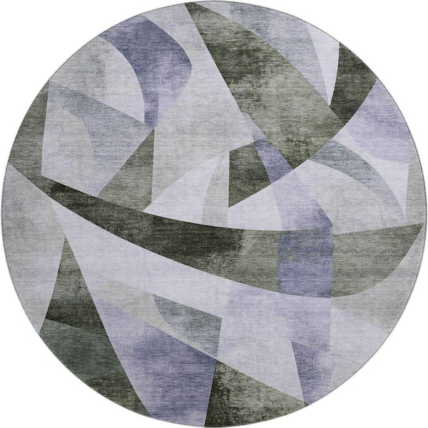 Mayfield Premium Machine Washable Abstract AMF1836 Olive 8 ft. x 8 ft. Round Rug