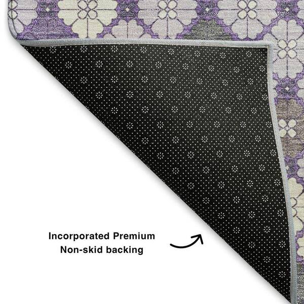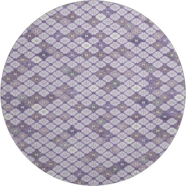 Mayfield Premium Machine Washable Abstract AMF1837 Lavender 8 ft. x 8 ft. Round Rug