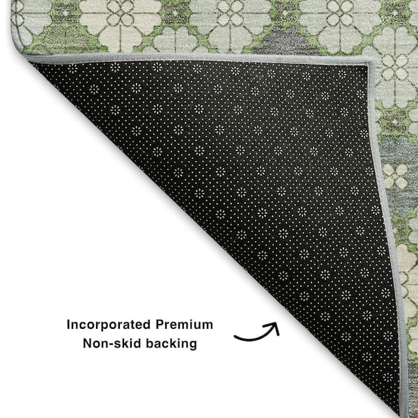 Mayfield Premium Machine Washable Abstract AMF1837 Mint 8 ft. x 8 ft. Round Rug