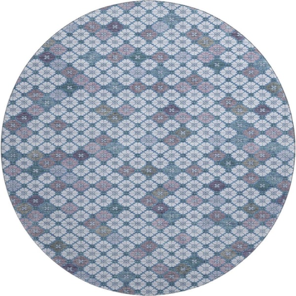 Mayfield Premium Machine Washable Abstract AMF1837 Sky 8 ft. x 8 ft. Round Rug
