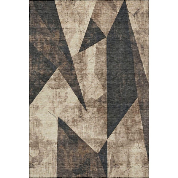 Mayfield Premium Machine Washable Abstract AMF1838 Mocha 8 ft. x 10 ft. Area Rug