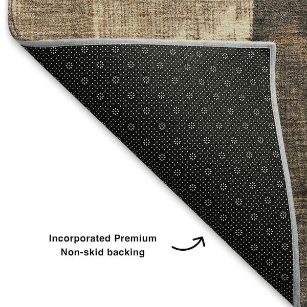 Mayfield Premium Machine Washable Abstract AMF1838 Mocha 8 ft. x 8 ft. Round Rug