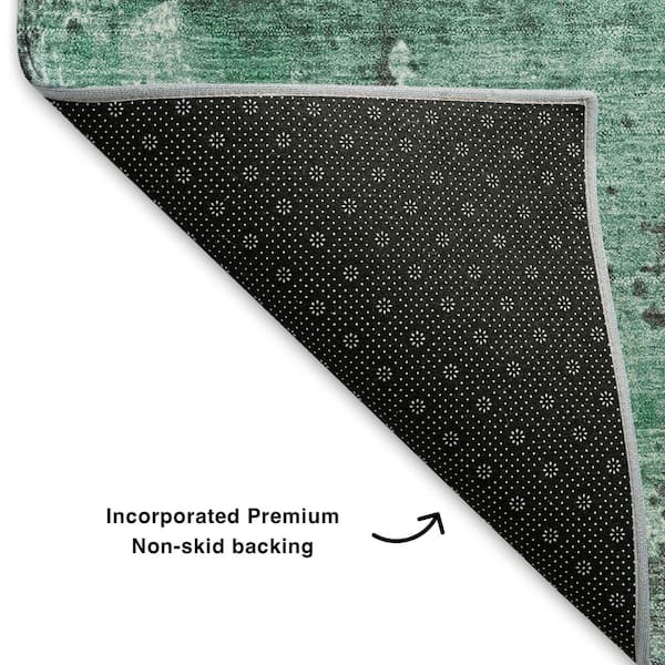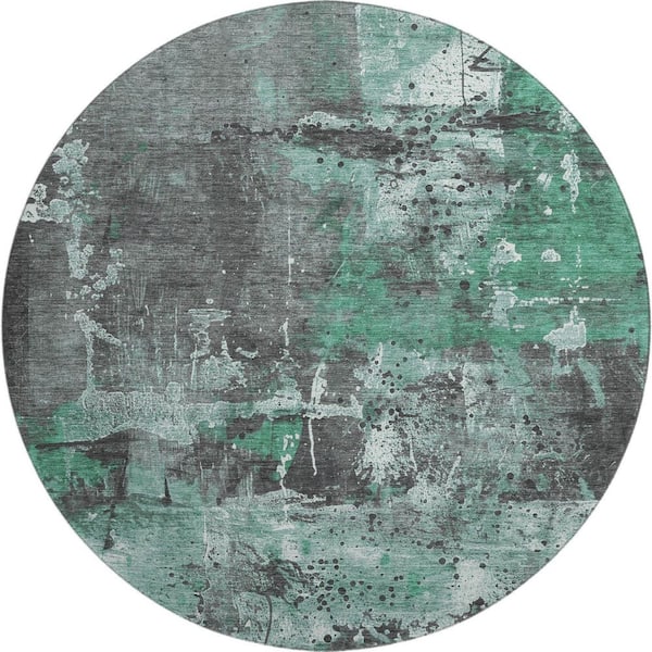 Mayfield Premium Machine Washable Abstract AMF1839 Green 8 ft. x 8 ft. Round Rug