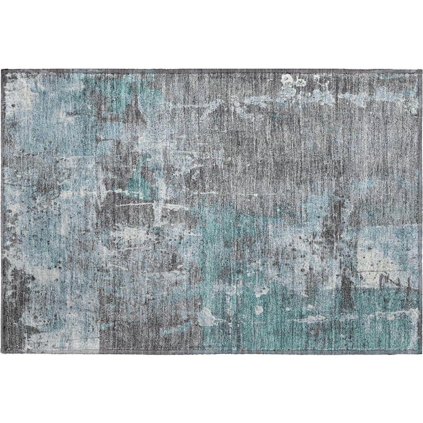Mayfield Premium Machine Washable Abstract AMF1839 Teal 2 ft. x 3 ft. Area Rug