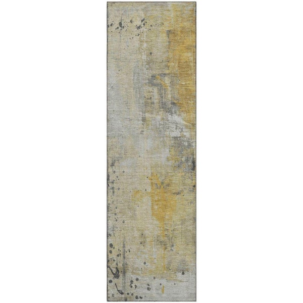 Mayfield Premium Machine Washable Abstract AMF1840 Gold 2 ft. 3 in. x 7 ft. 6 in. Runner Rug