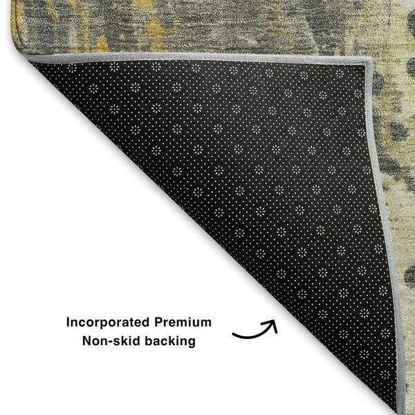 Mayfield Premium Machine Washable Abstract AMF1840 Gold 8 ft. x 8 ft. Round Rug