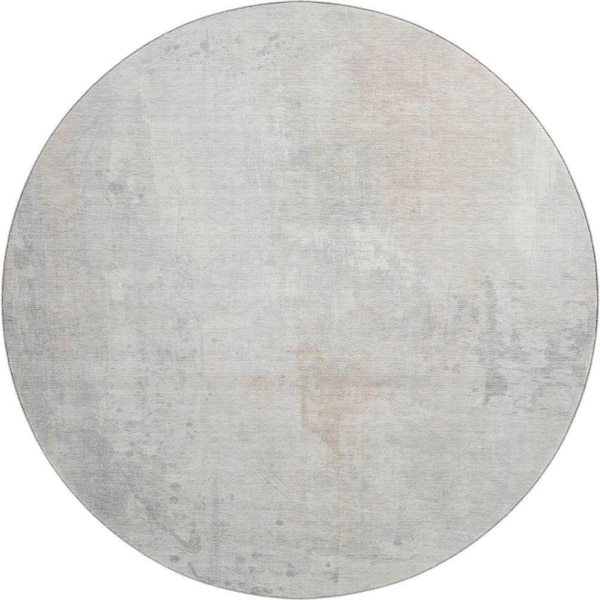 Mayfield Premium Machine Washable Abstract AMF1840 Ivory 8 ft. x 8 ft. Round Rug