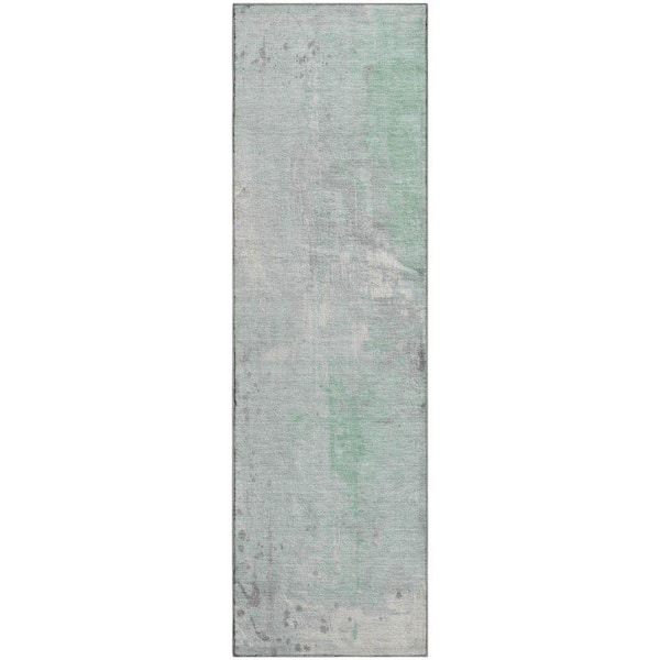 Mayfield Premium Machine Washable Abstract AMF1840 Mint 2 ft. 3 in. x 7 ft. 6 in. Runner Rug