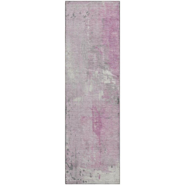 Mayfield Premium Machine Washable Abstract AMF1840 Pink 2 ft. 3 in. x 7 ft. 6 in. Runner Rug