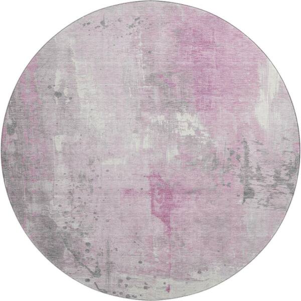 Mayfield Premium Machine Washable Abstract AMF1840 Pink 8 ft. x 8 ft. Round Rug
