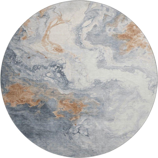 Mayfield Premium Machine Washable Abstract AMF1841 Gray 8 ft. x 8 ft. Round Rug