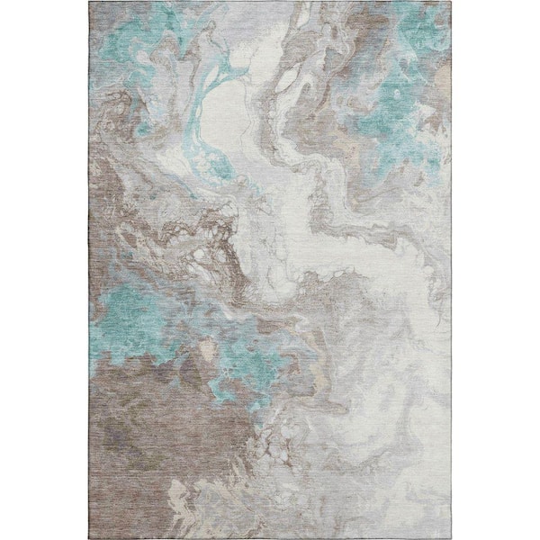 Mayfield Premium Machine Washable Abstract AMF1841 Teal 8 ft. x 10 ft. Area Rug