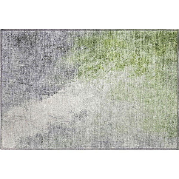 Mayfield Premium Machine Washable Abstract AMF1842 Aloe 2 ft. x 3 ft. Area Rug