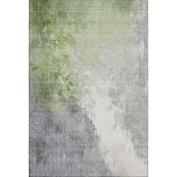 Mayfield Premium Machine Washable Abstract AMF1842 Aloe 3 ft. x 4 ft. Area Rug