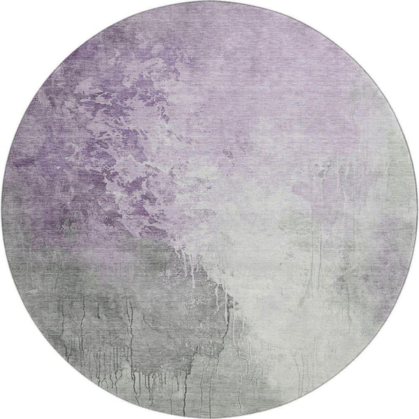 Mayfield Premium Machine Washable Abstract AMF1842 Lavender 8 ft. x 8 ft. Round Rug