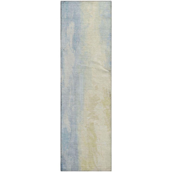 Mayfield Premium Machine Washable Abstract AMF1844 Denim 2 ft. 3 in. x 7 ft. 6 in. Runner Rug