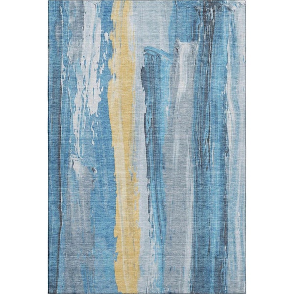 Mayfield Premium Machine Washable Abstract AMF1845 Blue 5 ft. x 7 ft. 6 in. Area Rug