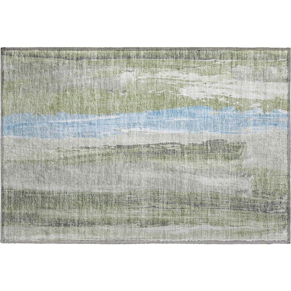 Mayfield Premium Machine Washable Abstract AMF1845 Olive 2 ft. x 3 ft. Area Rug