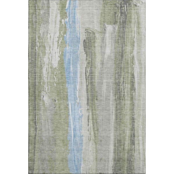 Mayfield Premium Machine Washable Abstract AMF1845 Olive 5 ft. x 7 ft. 6 in. Area Rug