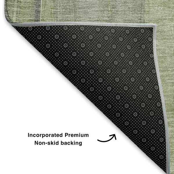 Mayfield Premium Machine Washable Abstract AMF1845 Olive 8 ft. x 8 ft. Round Rug