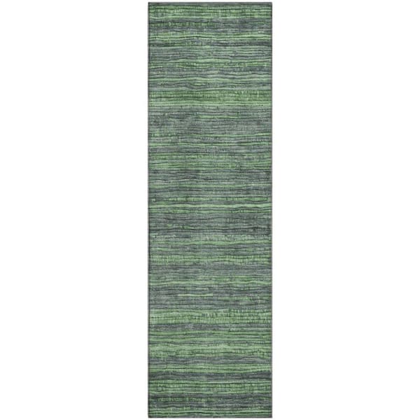 Mayfield Premium Machine Washable Abstract AMF1846 Green 2 ft. 3 in. x 7 ft. 6 in. Runner Rug
