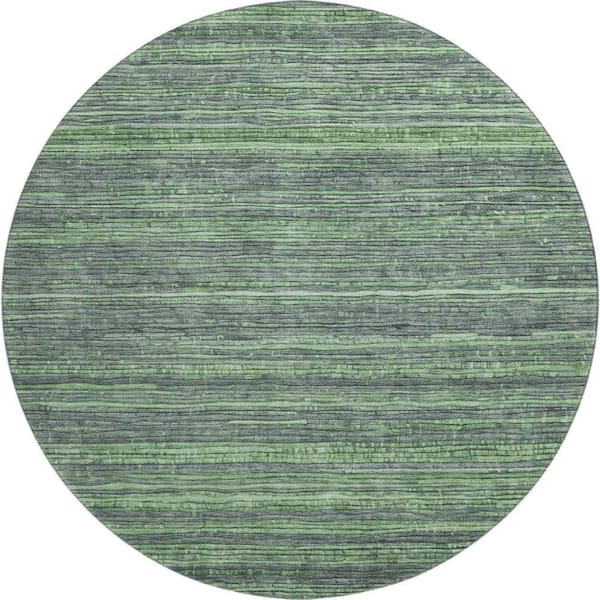 Mayfield Premium Machine Washable Abstract AMF1846 Green 8 ft. x 8 ft. Round Rug
