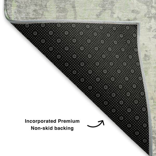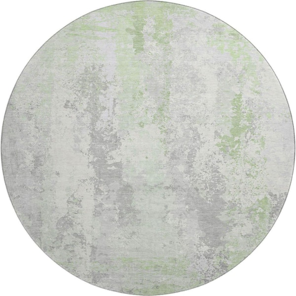 Mayfield Premium Machine Washable Abstract AMF1848 Aloe 8 ft. x 8 ft. Round Rug