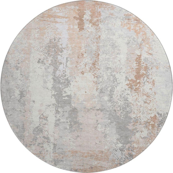 Mayfield Premium Machine Washable Abstract AMF1848 Coral 8 ft. x 8 ft. Round Rug