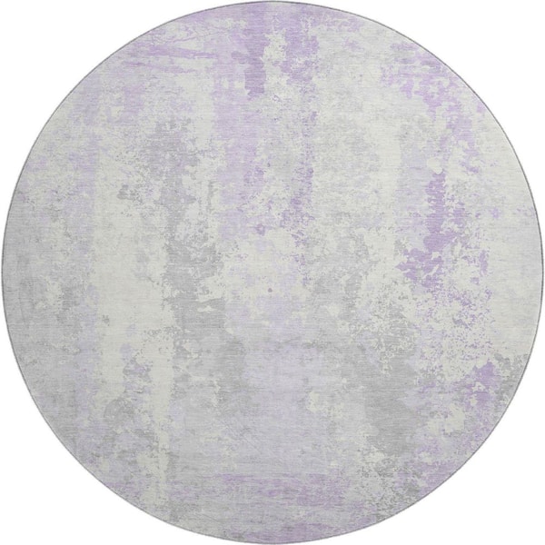 Mayfield Premium Machine Washable Abstract AMF1848 Lavender 8 ft. x 8 ft. Round Rug