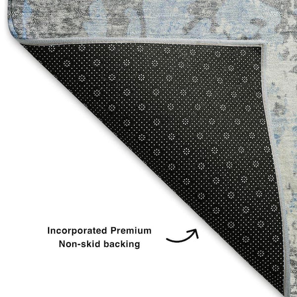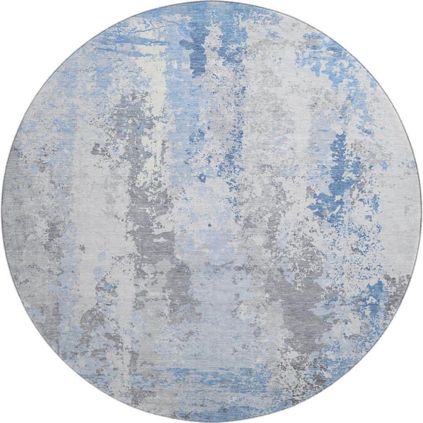Mayfield Premium Machine Washable Abstract AMF1848 Sky 8 ft. x 8 ft. Round Rug