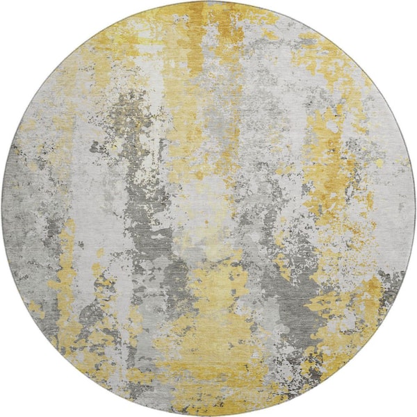 Mayfield Premium Machine Washable Abstract AMF1848 Yellow 8 ft. x 8 ft. Round Rug