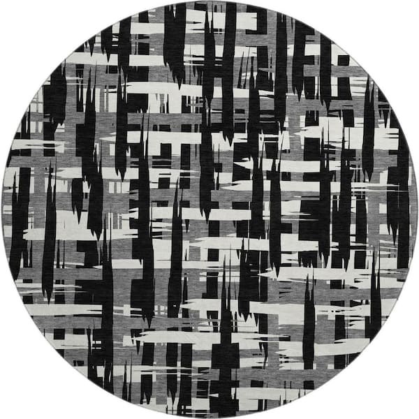 Mayfield Premium Machine Washable Abstract AMF1849 Black 8 ft. x 8 ft. Round Rug
