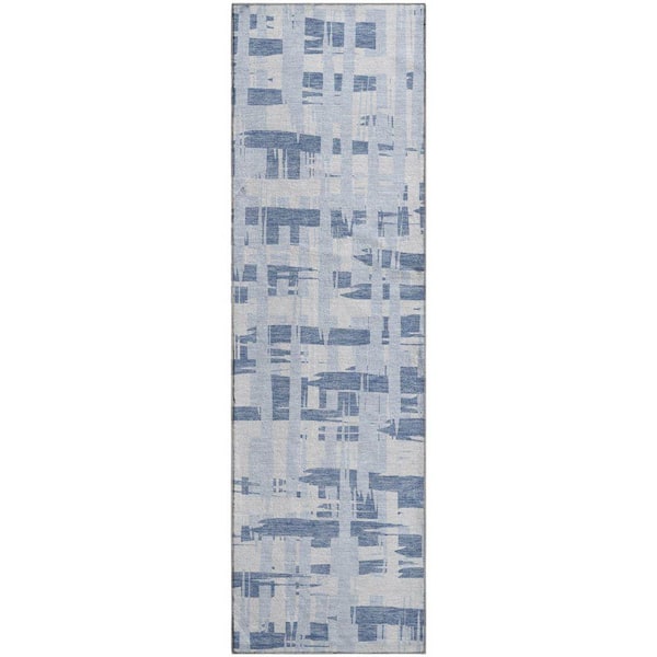 Mayfield Premium Machine Washable Abstract AMF1849 Blue 2 ft. 3 in. x 7 ft. 6 in. Runner Rug