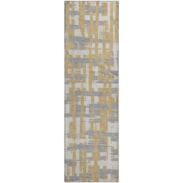 Mayfield Premium Machine Washable Abstract AMF1849 Gold 2 ft. 3 in. x 7 ft. 6 in. Runner Rug