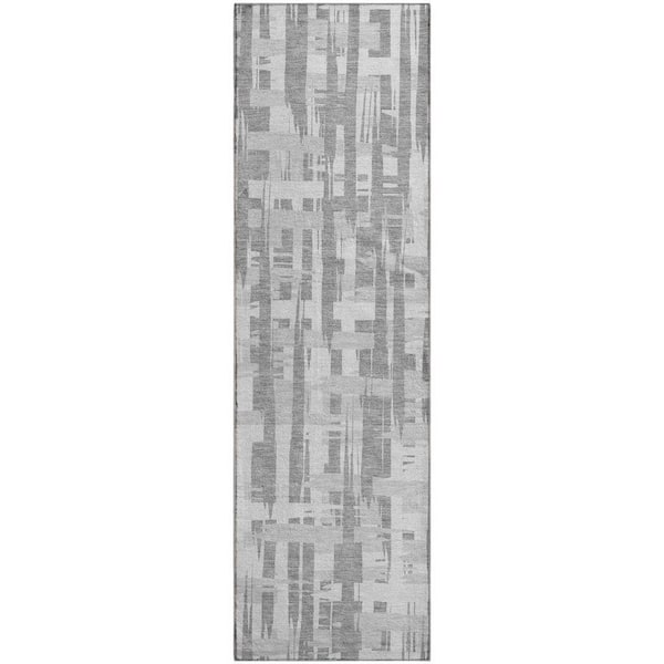 Mayfield Premium Machine Washable Abstract AMF1849 Gray 2 ft. 3 in. x 7 ft. 6 in. Runner Rug
