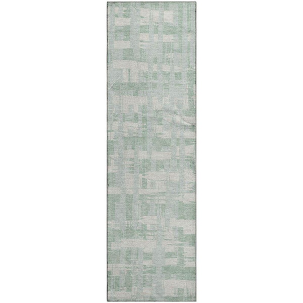 Mayfield Premium Machine Washable Abstract AMF1849 Mint 2 ft. 3 in. x 7 ft. 6 in. Runner Rug
