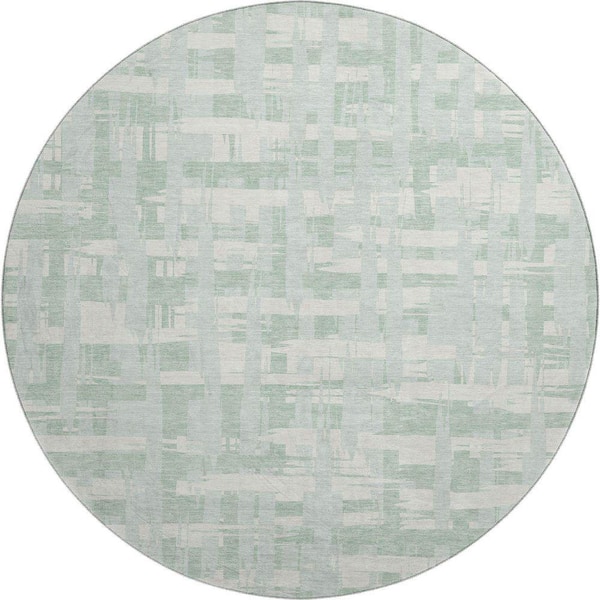 Mayfield Premium Machine Washable Abstract AMF1849 Mint 8 ft. x 8 ft. Round Rug