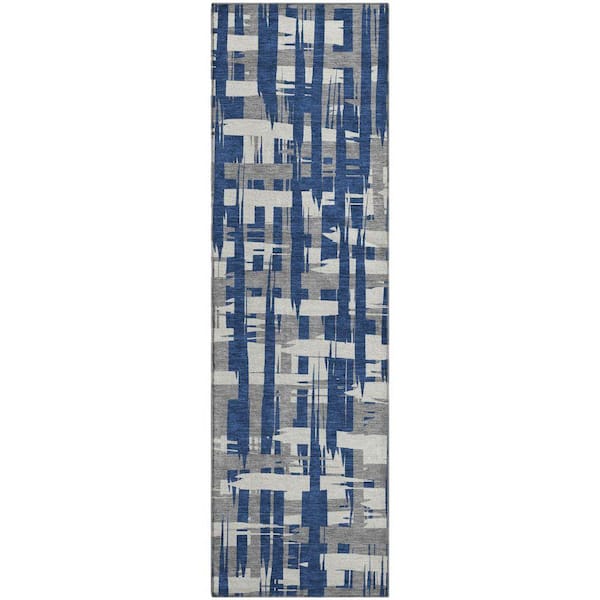 Mayfield Premium Machine Washable Abstract AMF1849 Navy 2 ft. 3 in. x 7 ft. 6 in. Runner Rug