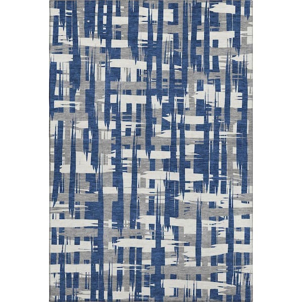 Mayfield Premium Machine Washable Abstract AMF1849 Navy 3 ft. x 4 ft. Area Rug