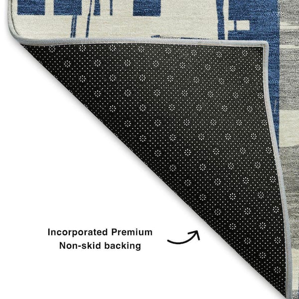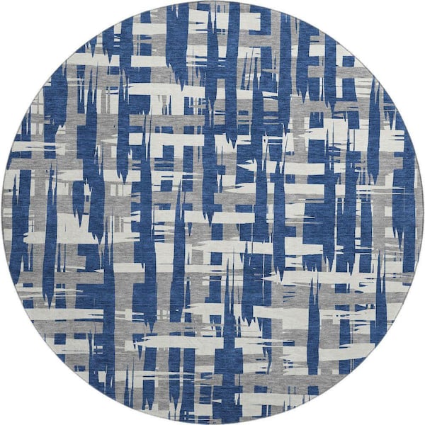 Mayfield Premium Machine Washable Abstract AMF1849 Navy 8 ft. x 8 ft. Round Rug