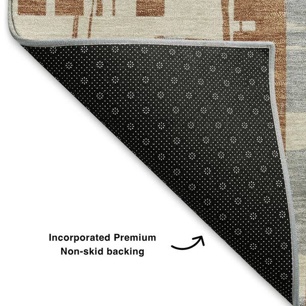 Mayfield Premium Machine Washable Abstract AMF1849 Paprika 8 ft. x 8 ft. Round Rug