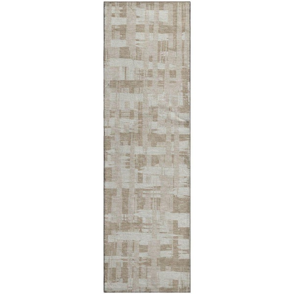 Mayfield Premium Machine Washable Abstract AMF1849 Taupe 2 ft. 3 in. x 7 ft. 6 in. Runner Rug