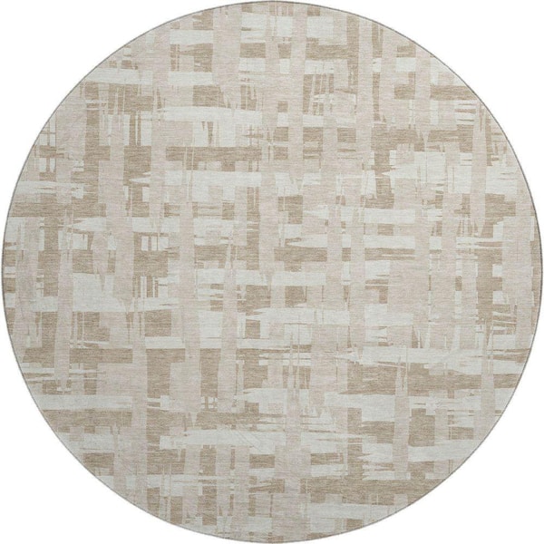 Mayfield Premium Machine Washable Abstract AMF1849 Taupe 8 ft. x 8 ft. Round Rug