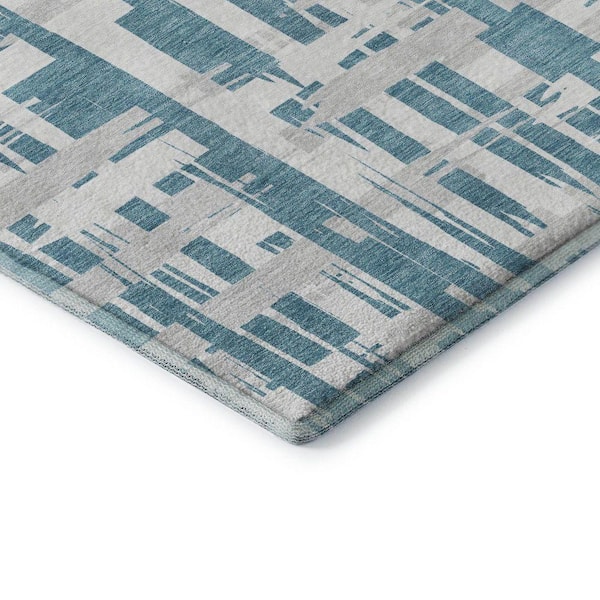 Mayfield Premium Machine Washable Abstract AMF1849 Teal 3 ft. x 5 ft. Area Rug