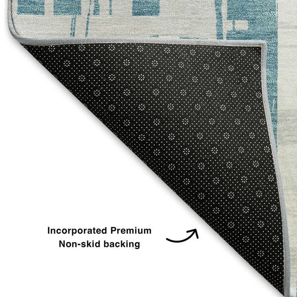 Mayfield Premium Machine Washable Abstract AMF1849 Teal 8 ft. x 8 ft. Round Rug