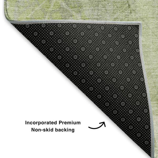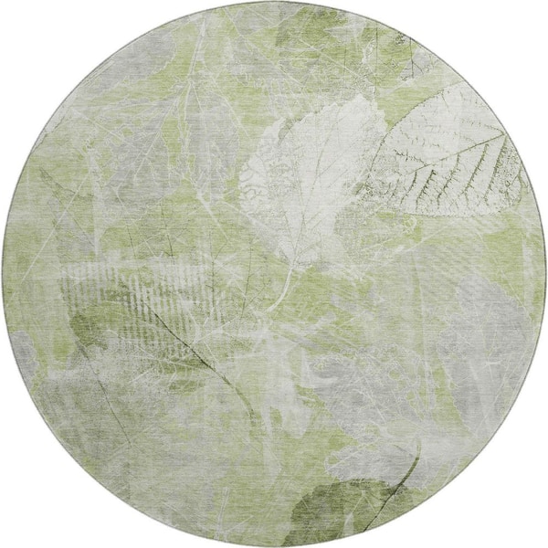 Mayfield Premium Machine Washable Abstract AMF1850 Aloe 8 ft. x 8 ft. Round Rug
