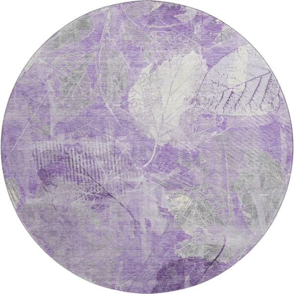 Mayfield Premium Machine Washable Abstract AMF1850 Lavender 8 ft. x 8 ft. Round Rug