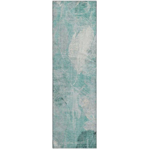 Mayfield Premium Machine Washable Abstract AMF1850 Teal 2 ft. 3 in. x 7 ft. 6 in. Runner Rug