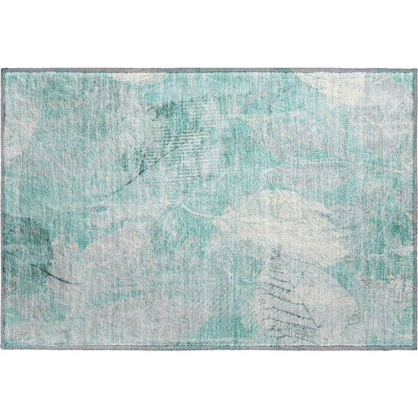 Mayfield Premium Machine Washable Abstract AMF1850 Teal 2 ft. x 3 ft. Area Rug